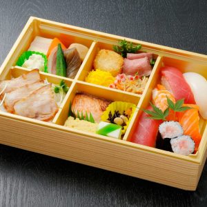 obentoお弁当 イベント・行事握り懐石膳 握り懐石膳 おさかな亭自慢の握り寿しをメインに様々な食材を盛り込んだ自信作です。特別な席にどうぞ。 2480円(税込) 数量: - + お品書き 握り寿司、サーモン西京焼き、だし焼き玉子、煮物、和風ローストビーフ、錦糸しゅうまい、豚あぶり焼、揚物 等 サイズ W27.0×D18.0×H5.2(cm) 予約期限 2営業日前の23時までにご予約ください。 ※季節により副菜の内容、器など変更する場合がございます。 ※MR対応可能(無料お茶付き)