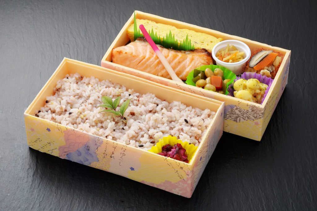 脂の乗った大振りの自家製サーモン西京焼きを詰め込んだ人気の二段弁当。西京焼きの上品な味を楽しみたい人にオススメです。