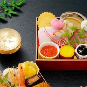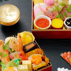魚時のおせち「祝箱」。程よい大きさの中に厳選された21品をぎゅっと詰め込みました。