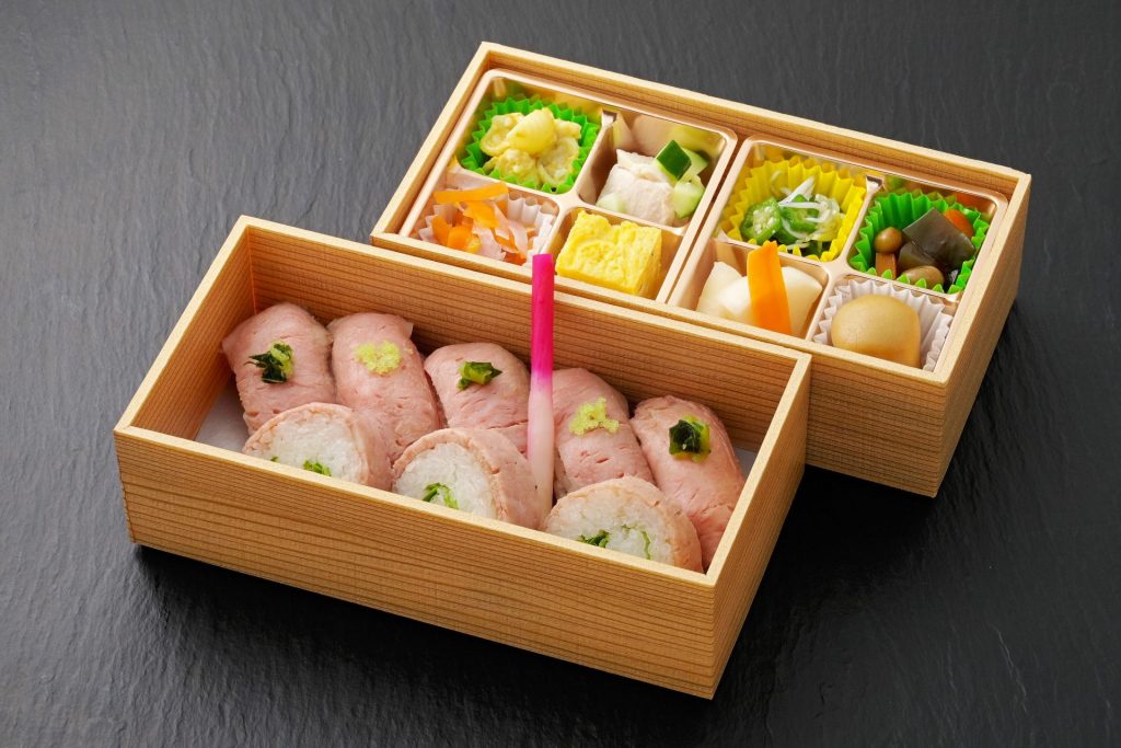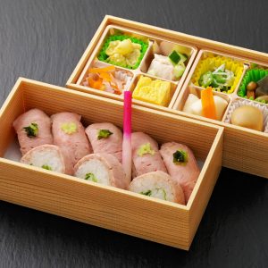 obentoお弁当 イベント・行事肉膳 ~黒毛和牛の肉寿司~ 肉膳 ~黒毛和牛の肉寿司~ 当店人気の『自家製黒毛和牛ローストビーフ』を贅沢に使用して、「握り」と「太巻き」のお寿司にしました。 2160円(税込) 数量: - + お品書き 黒毛和牛の肉寿司(握り・太巻き)、紅白はじかみ、副菜八種、ご飯 サイズ W20.4×D10.4×H4.1(cm)×2段 予約期限 2営業日前の23時までにご予約ください。 ※季節により副菜の内容、器など変更する場合がございます。 ※MR対応可能(無料お茶付き)