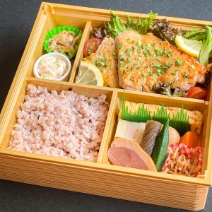 obentoお弁当 イベント・行事ふじのくにロース葱味噌御膳 ふじのくにロース葱味噌御膳 静岡県産ブランド豚「ふじのくに」を使用しました。自家製の葱味噌と一緒に焼き上げており、香ばしく甘辛い味はご飯が進みます。 ★雑穀ご飯を『白ご飯』へ変更できます。 1940円(税込) 数量: - + お品書き 静岡県産ブランド豚「ふじのくに」ロース葱味噌焼き、煮物類、だし焼き玉子、副菜類、二十三穀米 サイズ W21.7×D21.7×H5.0(cm) 予約期限 2営業日前の23時までにご予約ください。 ※季節により副菜の内容、器など変更する場合がございます。 ※MR対応可能(無料お茶付き)