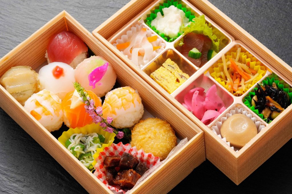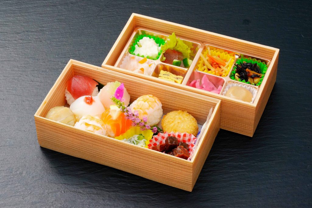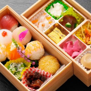 見た目もかわいく華やかな手まり寿司の張ったお弁当を作ってみました。一口サイズのお寿司なので、食べやすさの点でもおすすめです。
