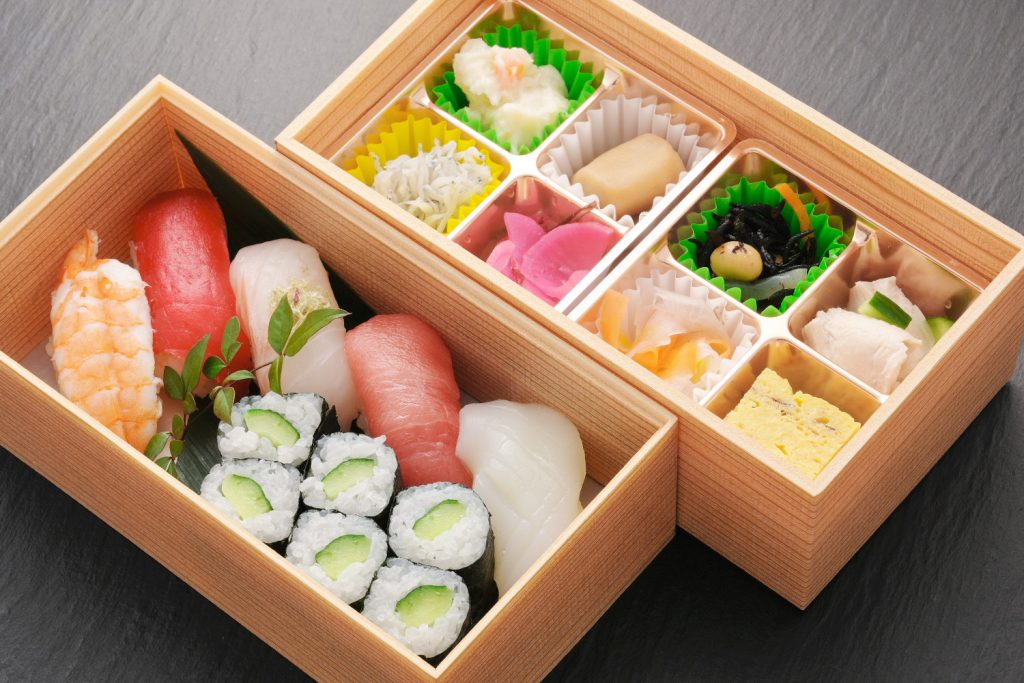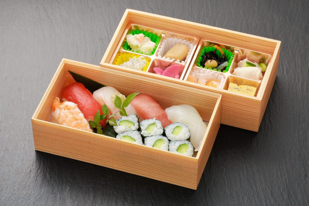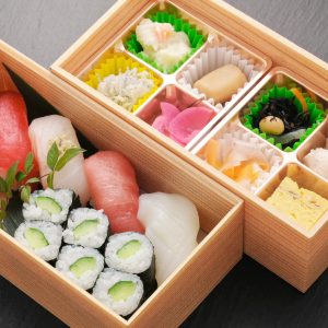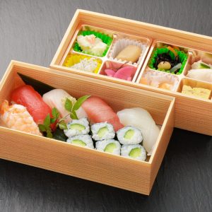 魚時自慢の握り寿司と、煮物・揚げ物等のおかずを組み合わせた、「握り」と「おかず」のどちらも楽しめるお弁当です。