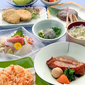 planコース コースしずおかの恵み 駿河 しずおかの恵み 駿河 会合宴会・交流会行事・観光 コース 6050円(税込) 静岡県の名物を集めたコース。 金目鯛、桜えび、白す、黒はんぺん、県内産フルーツに加え、地元野菜を使用した料理を取り揃えました。 別途、下記のサービス料を頂戴しております。 1F魚時会館おさかな亭 昼:無料 夜:1時間以上のご利用で300円 2F魚時会館 昼・夜:10% お品書き 【コース内容(全9品)】 生白す 魚時のお刺身盛り 黒はんぺんフライ 駿河湾産桜えびのかき揚げ 農家直送サラダ 玉取茸のステーキ(3月中旬頃までは自家製漬魚の焼魚になります) 金目鯛煮付け 釜揚げ白すご飯 県産フルーツ ※仕入状況によりメニューが変更となる場合がございます。 【魚時の刺身】 そのおいしさは、昭和7年創業の魚屋時代から培われてきた「目利き」と「魚を扱う技術」によるもの。長年地域の皆様に愛され続けております。 【金目鯛】 静岡県は「金目鯛」の漁獲量が日本一の県。その昔は魚屋で安く扱われていましたが、漁獲量が減ると共に味が知れ渡り、知名度が上がるにつれて高級魚に。主に甘辛く似た煮付けが好まれていますが、クセが無く上品な甘さが特徴でどのような調理法でも美味しく召し上がれます。 【桜えび】 海のルビーとも称される駿河湾産桜えびは、資源の減少で大変貴重なものとなってきました。当店ではパラパラとほぐれるように、職人が一つ一つ丁寧に揚げております。 【生白す】 富士山の雪解け水が流れ込む駿河湾には、豊富な栄養で満たされています。そのような環境で育った「白す」は、日本一との呼び声も高く、生食でも釜揚げでも非常に美味です。 【黒はんぺん】 鯖や鰺、鰯など、駿河湾で獲れた青魚を主原料としている「黒はんぺん」。静岡の県民食であり、主におでんなどに用いられますが、新鮮な「黒はんぺん」は、素材の風味がとても良く伝わります。 【玉取茸】 藤枝市玉取の杉山農園が作る椎茸。農林水産大臣賞金賞の受賞歴があり、大きくて肉厚な身は旨味がたっぷり詰まっています。 【藤枝野菜】 藤枝市は、お茶の生産地としても有名です。豊富かつ良質な水源に肥沃な大地、昼夜の寒暖差が大きな気候が香り高いお茶を育みます。同様の環境で育った野菜は、エンルギーに溢れ、野菜本来の旨味を堪能できます。 【県内産フルーツ】 県内産のメロンやイチゴなどをご用意。 受付人数 2名様~ 予約期限 2営業日前の15時までにご予約ください 提供期間 2020年3月1日~ 提供時間 120分