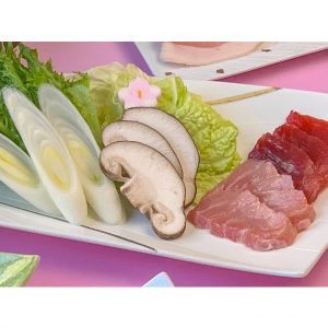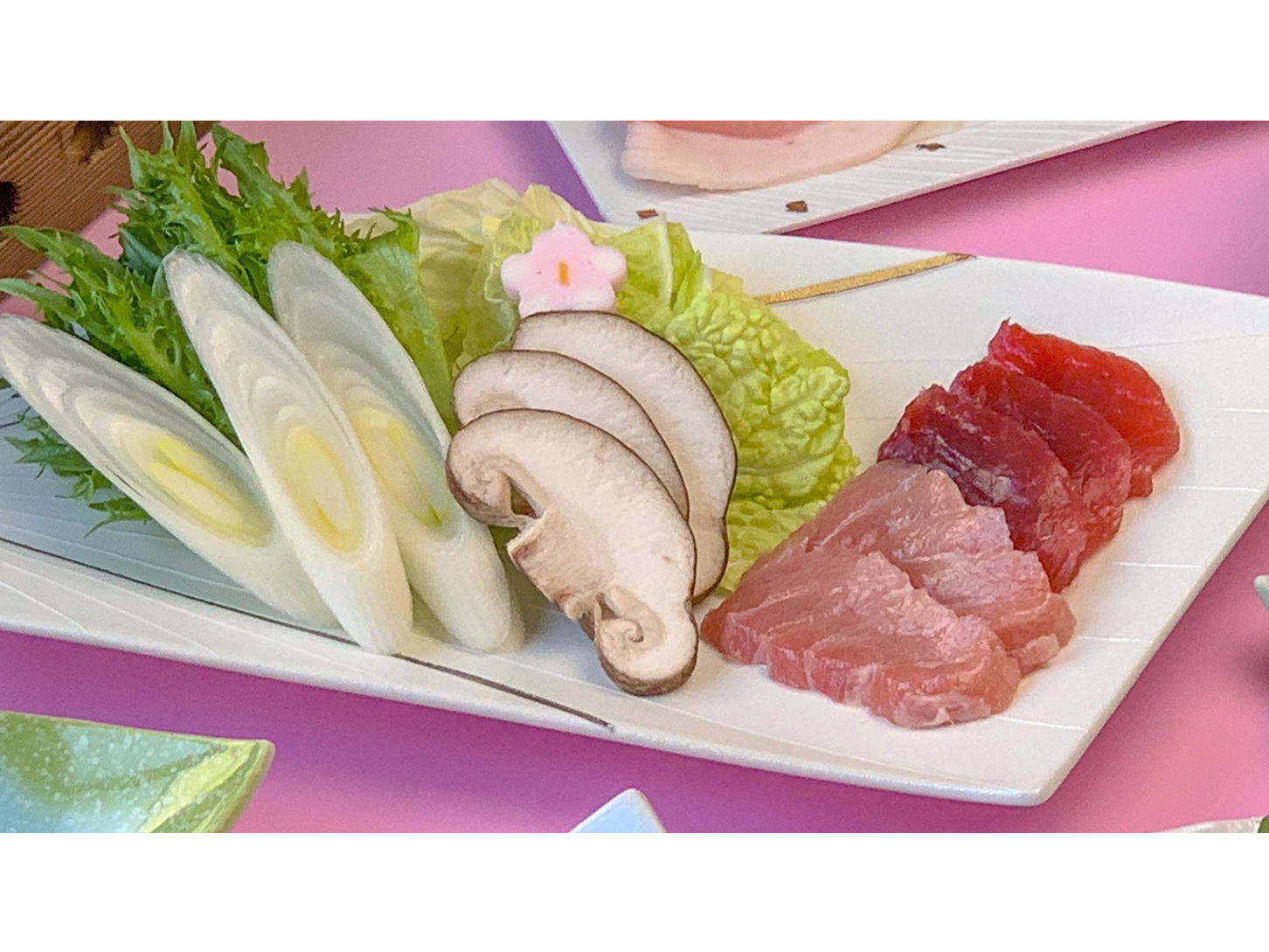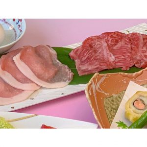鮪と黒毛和牛と静岡県産ブランド豚「ふじのくに」を使用した「すきしゃぶコース」です。