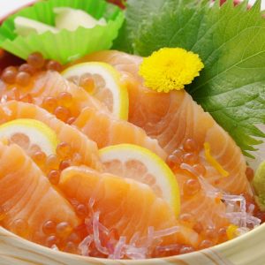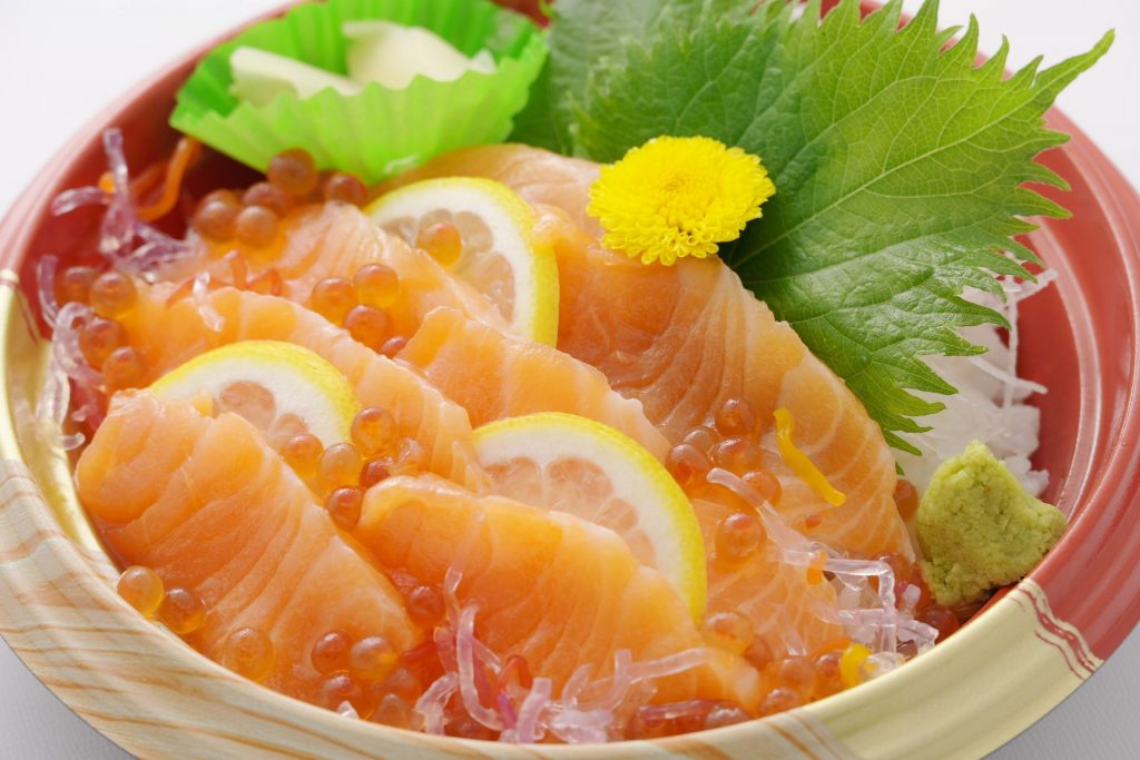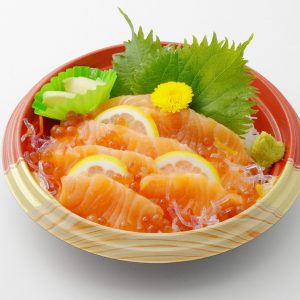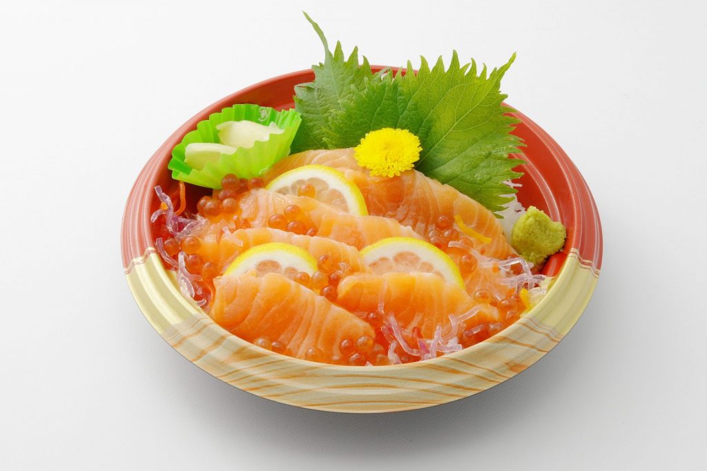 サーモンといくらが敷き詰められた贅沢な丼。いくらは自家製のものを使用しています。