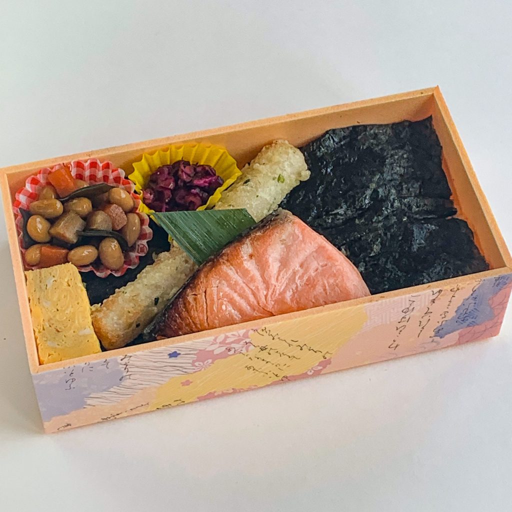 takeoutテイクアウト イベント・行事サーモン西京焼のり弁 サーモン西京焼のり弁 会議・研修イベント・行事行楽・バス積込スポーツ・大会魚がメイン 脂の乗った「アトランティックサーモン」を秘伝の味噌床に漬けました。そして、焼き上げた西京焼きを「のり弁」の上に乗せた贅沢な一品です。 1100円(税込) 数量: - + 使い捨て容器 予約期限 当日注文可能 ※テイクアウト商品のまとめてのご注文は追加でお時間を頂きます。余裕をもってご注文ください。