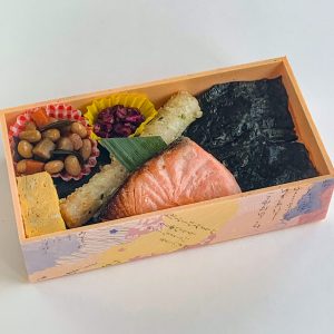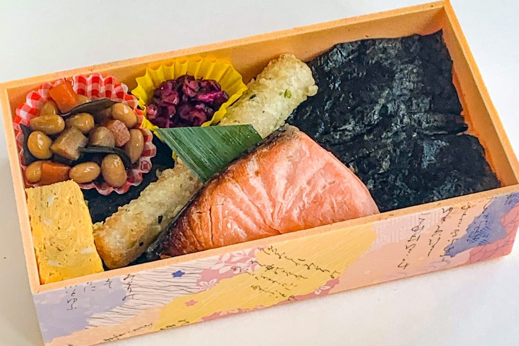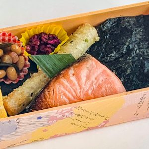 脂の乗った「アトランティックサーモン」を秘伝の味噌床に漬けました。そして、焼き上げた西京焼きを「のり弁」の上に乗せた贅沢な一品です。