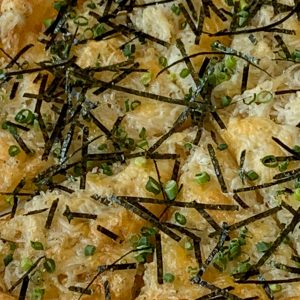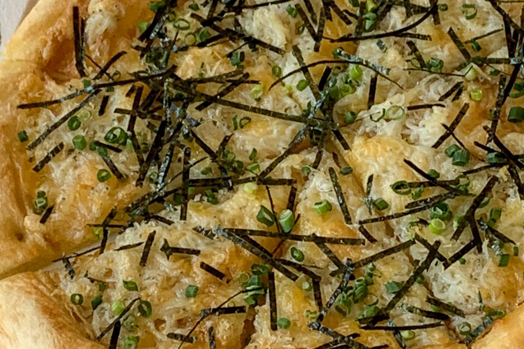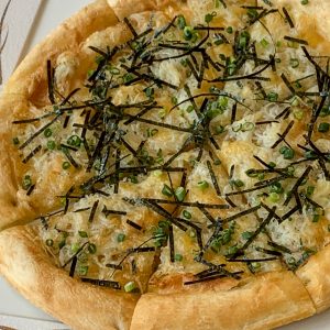 「しらす」たっぷりの和風ピザ。海苔と醤油が香ばしい風味を醸し出します。