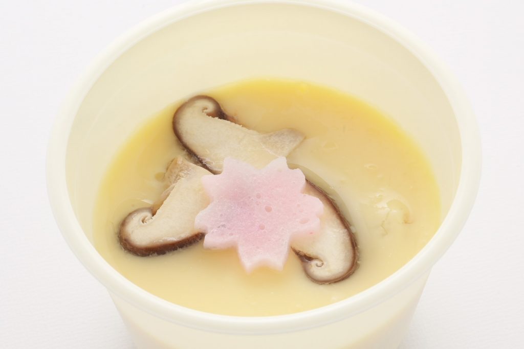 定番の人気メニュー。10月~5月は温かい茶碗蒸し、6月~9月は冷製茶碗蒸しでお渡しします。