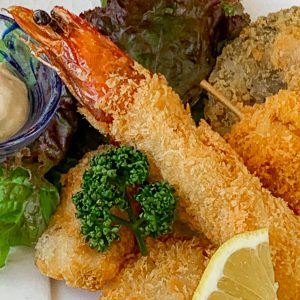 takeoutテイクアウト 天使の海老入り花まるフライの盛り合わせ スペシャル天使の海老入りフライ盛り合わせ みんな大好きなフライの盛り合わせ!「天国に一番近い島」からきた「天使の海老」の海老フライ入りです。ソースは勿論、温かければお塩で食べるのもおすすめです!(温める場合は、オーブンの使用をお勧めします) 身の味もさることながら、頭が非常に美味です。食べられるようにカリっと揚げてありますので、是非お召し上がりください。 ※当店のフライは、Dr.Fly2を使用して油分の吸収量を大幅にカットしています。 1000円(税込) 数量: - + 使い捨て容器 予約期限 当日注文可能 ※テイクアウト商品のまとめてのご注文は追加でお時間を頂きます。余裕をもってご注文ください。